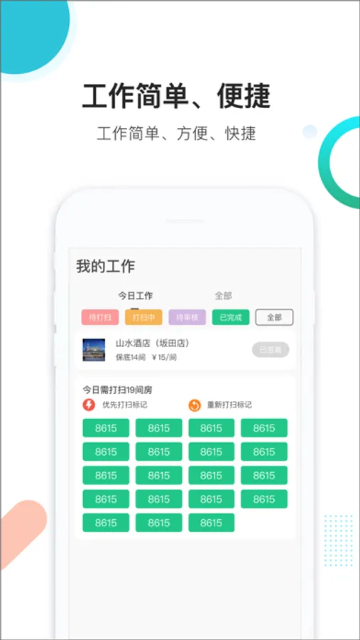 酒店行业的客房清洁工作,接受全职或者兼职人员,通过实名认证即可获取附近酒店的清扫工作,每天接多少做多少,你的工作自己安排,打扫完成即可结算,支持微信提现。“马小二”平台的宗旨是:让房嫂能开心的工作,放心的玩耍,自由的工作随时等你