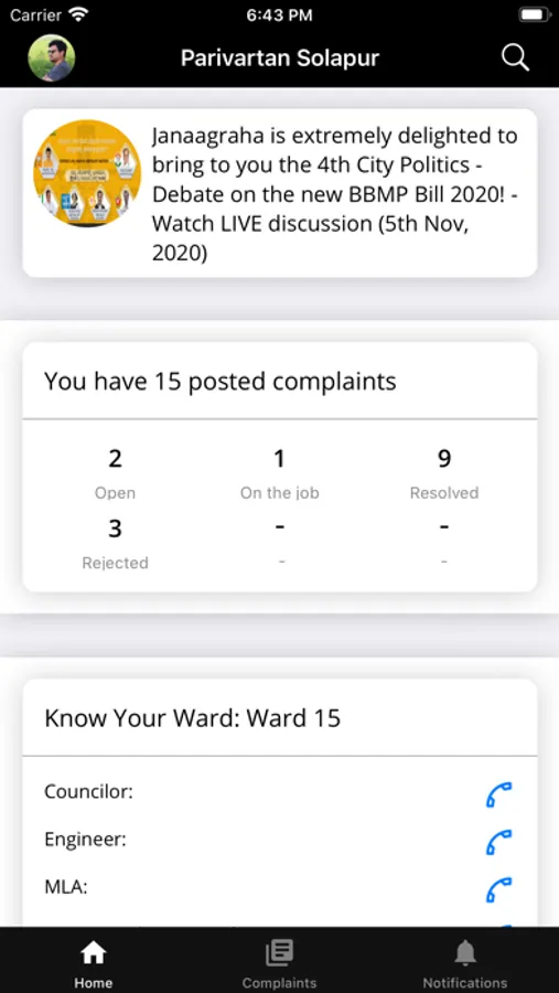This application is created to help citizens connect with the right government authority for addressing the civic grievances. Citizens can post a complaint in simple steps or vote up on the complaints raised by fellow citizens to emphasize on the magnitude of complaint.