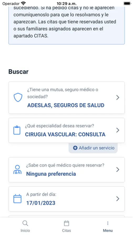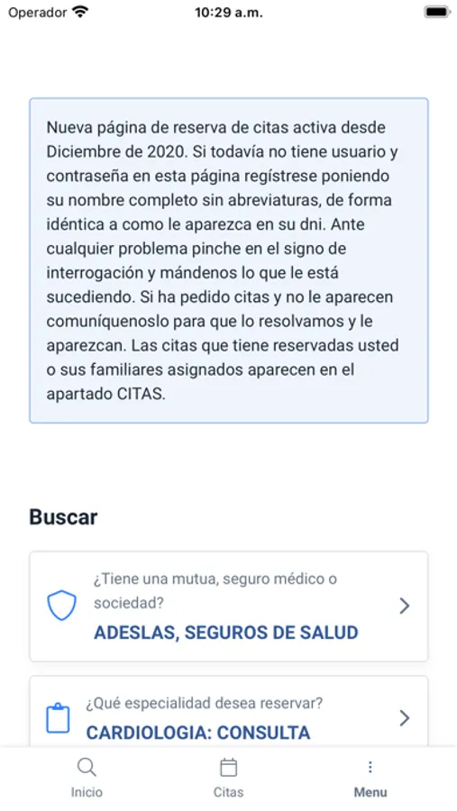Desde esta aplicación podrá reservar su cita médica, pruebas diagnósticas, ver su historial y contactar con Medicentro Boadilla.