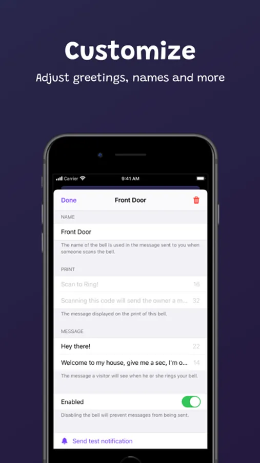 - Create up to 10 doorbells (back door, garage door, etc.)