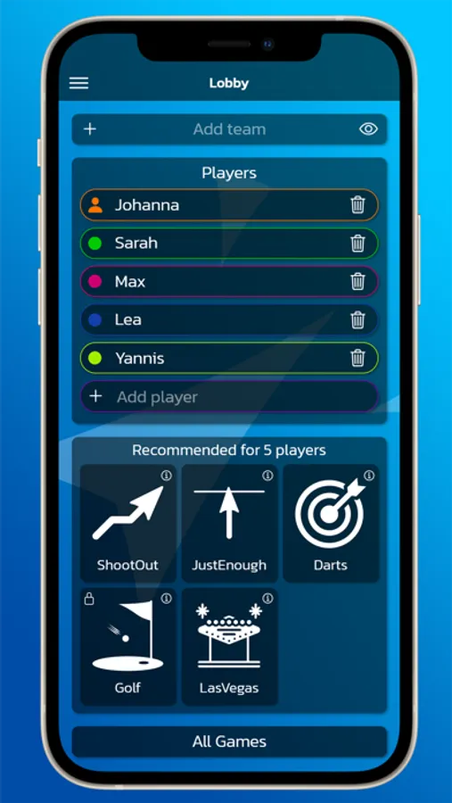 The game variants differ in competition, teamwork or fun games. There's the right game for every occasion.
