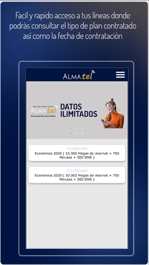 AlmaTel es una APP para clientes que te permite realizar todas las consultas de tu Sucursal Virtual: el estado de tus líneas de teléfono, saldo disponible, contratos, facturas y mucho más.