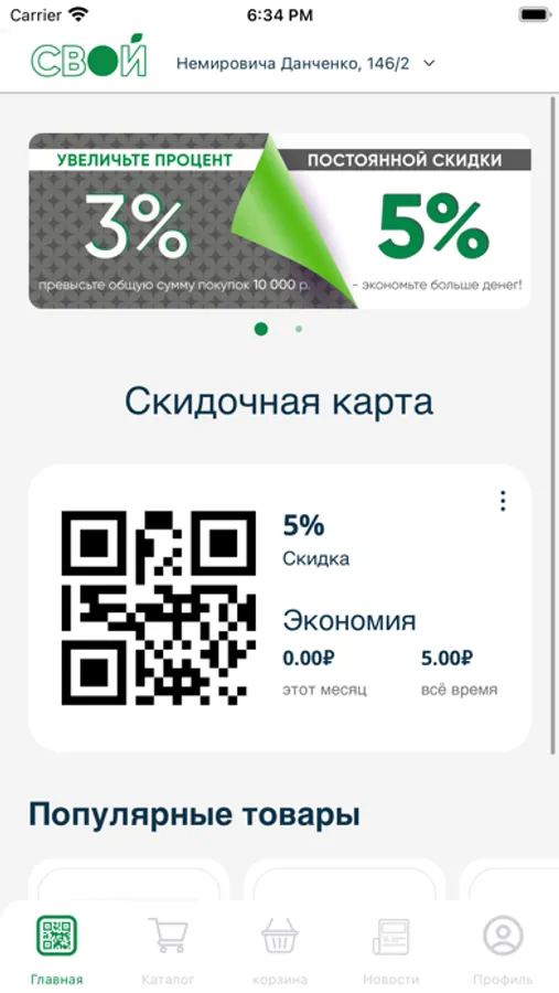 Используйте мобильное приложение программы лояльности как пластиковую, дисконтную карту в магазинах Свой. Отслеживайте экономию, смотрите историю покупок и отправляйте пожелания о работе магазинов.