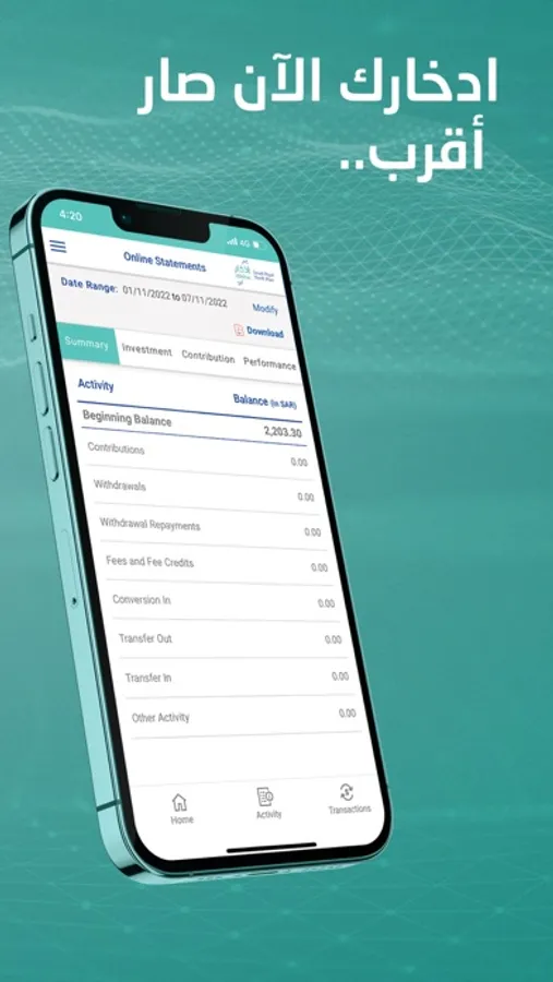 هي بوابة إلكترونية تفاعلية تتيح للمشتركين في نظام ادخار إمكانية إدارة حساباتهم، حيث يستطيع المستخدمون طلب تنفيذ المعاملات المالية والبحث عن الاستثمارات المتاحة وعرض تاريخ الحساب وأدائه. ويسعدنا أن نرحب بك كمستخدم. يرجى الإتصال بنا في حالة وجود أي استفسار.