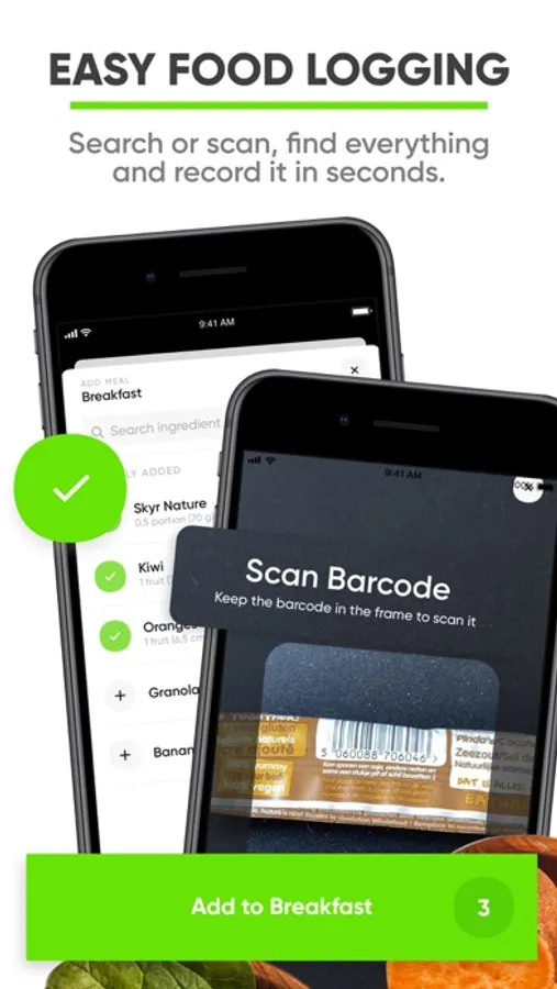 - Scan any barcode to automatically track your food