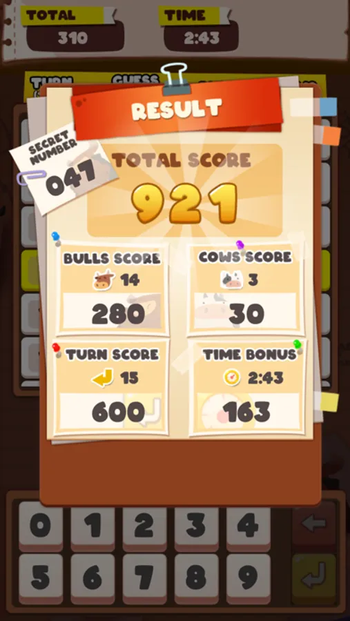 - Scores are awarded based on the number of "Bulls" and "Cows".