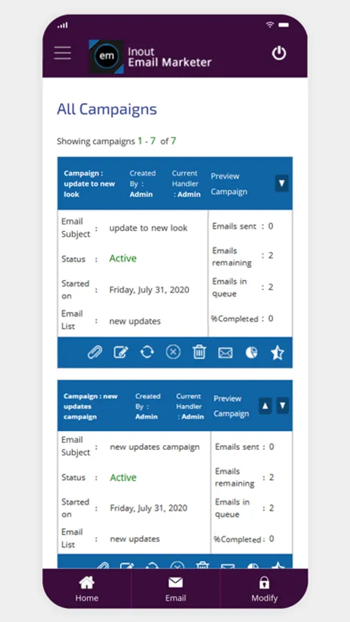 Inout Email Marketer is a bulk mailing and mailing list management app Send numerous email campaigns & manage unlimited amount of emails & lists from one script. Create projects to manage multiple campaigns and automatically trigger post dated campaigns. Detailed statistics, multiple SMTPS & Live tracking allow you to stay in complete control.
