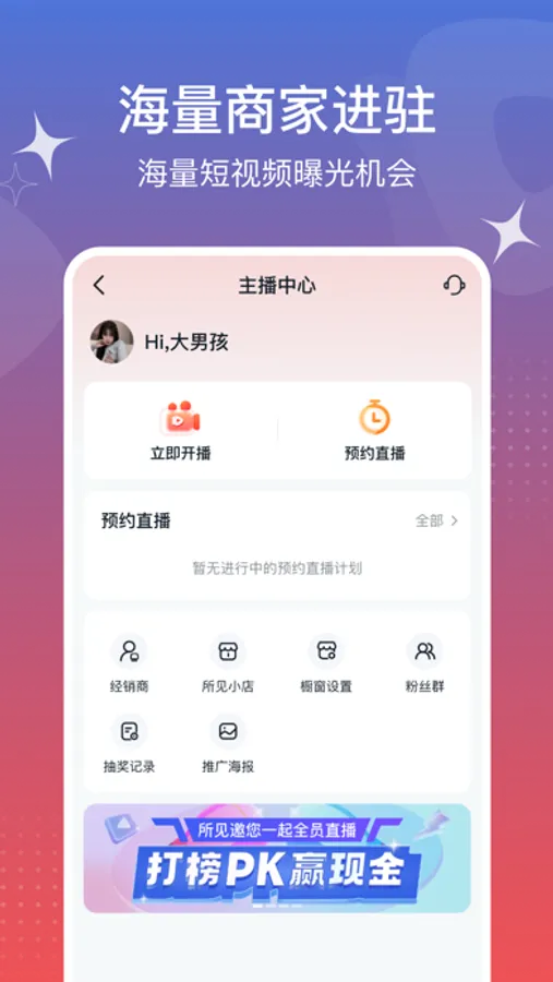 所见是一款为实体商家提供直播和短视频宣传的工具,让商家通过直播、视频的形式向目标客户展示自家的产品、服务和经营现状,让用户边看直播边抢线上各种各样的福利。商家还可设置和发放线下门店引流红包,用户可以通过地图模式到店扫码领取红包,为实体商家增加到店客流,引爆门店生意,真正助力实体经济。商家在直播时还可以通过平台的所见小店功能销售商品或服务,以直播带货达成销售目标。