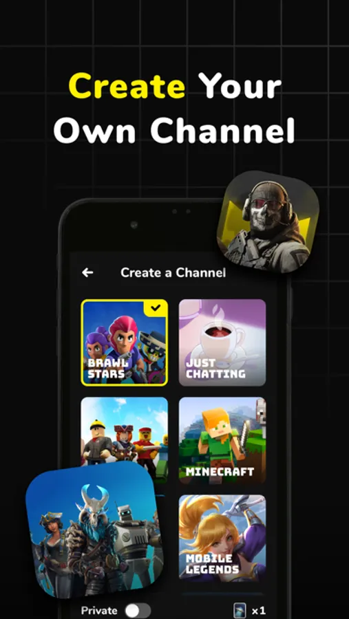 - Create your own public or private voice game channels/rooms