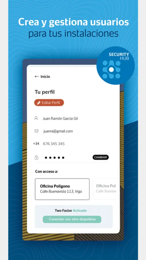 - Controlar quién tiene acceso a tus instalaciones de seguridad, generar nuevos usuarios, y darles distintos permisos para manejar tu infraestructura.