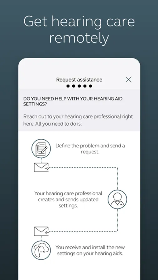• Enjoy optimization anywhere with online services: Request help with your hearing aid settings from your hearing care professional and receive new settings and software updates.