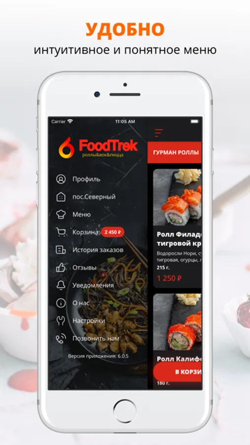 Мы осуществляем доставку еды в поселке Северном. Разнообразное меню порадует Вас. В нашем меню Вы сможете найти роллы, супы, пиццу, ВОК, закуски.