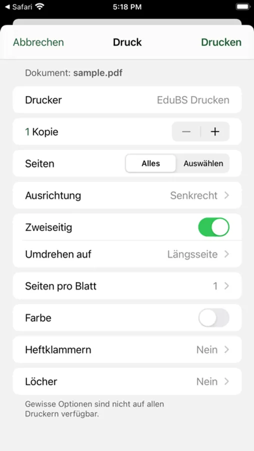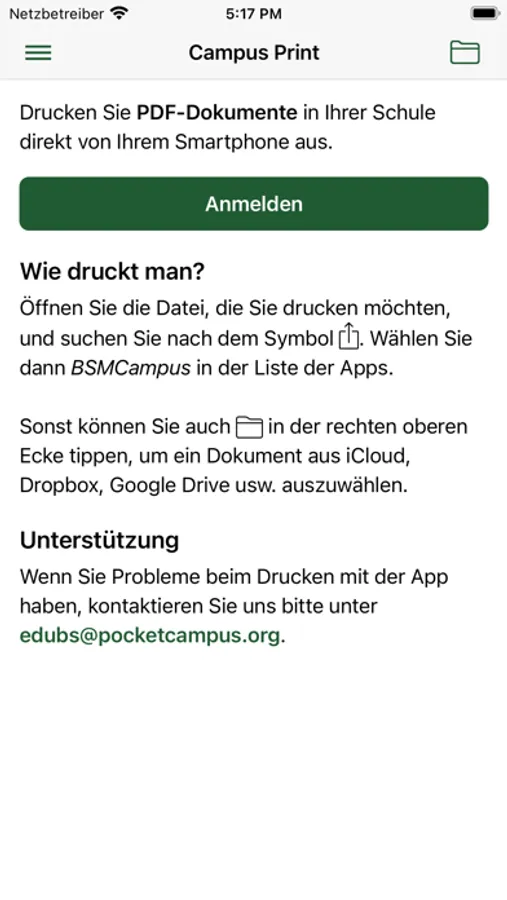 Die Schülerinnen und Schüler können Dokumente an ihrem Gymnasium direkt von ihrem mobilen Gerät aus drucken.