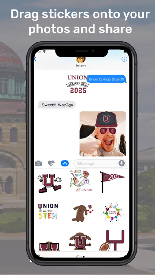 Congratulations to the Union College Class of 2025! This iMessage application lets you celebrate your admission to the class of 2025 by adding Union College branded static and animated Class of '25 stickers to your text and photo messages on iMessage. Text a sticker to your friends and classmates, or drag a sticker onto an existing message thread and represent yourself and Union College!