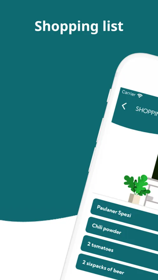 In your shared grocery list you can add items you need to buy next time you go to a grocery store.