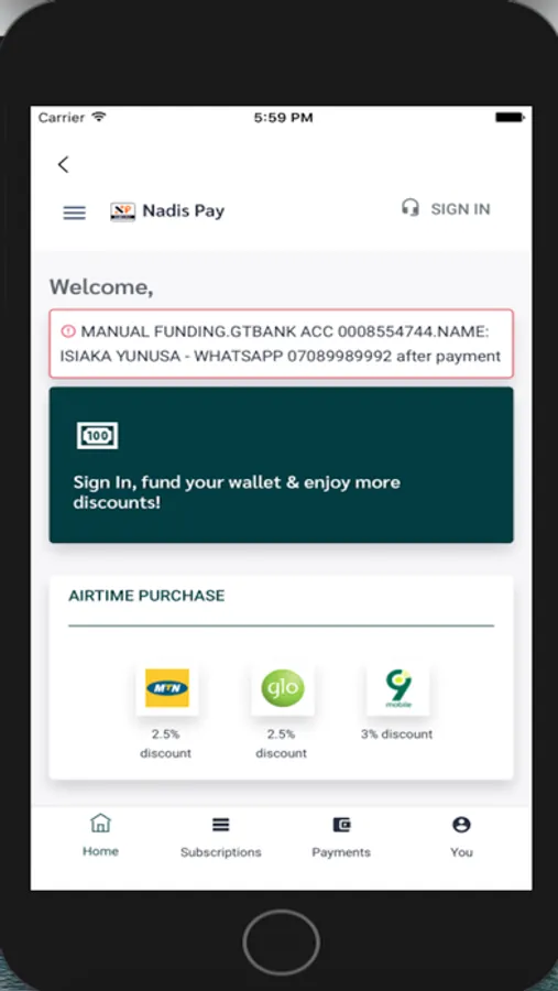 Nadis Pay provide cheap and affordable data, airtime, cable TV and electricity bills payment. The application comes with an easy to fund wallet through a dedicated bank account.