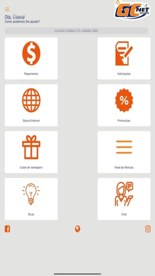 Aplicativo para acessar o serviço de atendimento da GC Net Provedor.