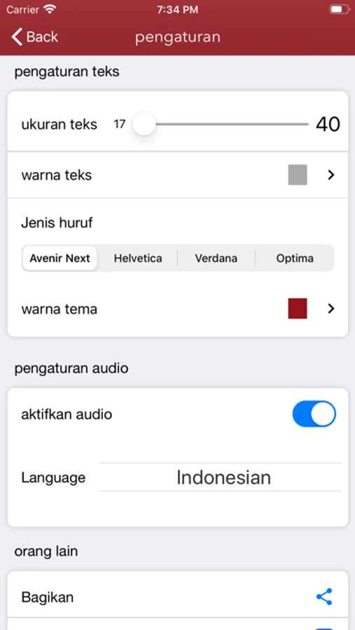 Termasuk pengaturan ukuran font, ditambah audio untuk semua pasal Alkitab (