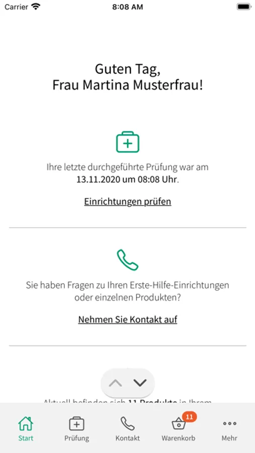 Nachdem Sie sich als Ansprechpartner Ihres Unternehmens registriert haben, erhalten Sie einen Überblick über Ihre Erste-Hilfe-Ausstattung, Ihren Warenkorb sowie Ihre Bestellhistorie.