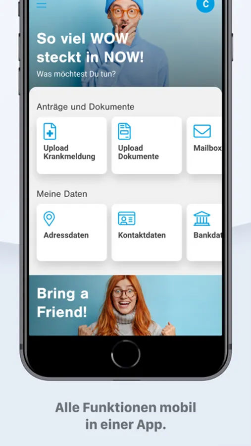 Damit kannst du beispielsweise am Bonusprogramm teilnehmen und Extra-Cash sammeln, Krankmeldungen einreichen und Dokumente (z.B. deine Studienbescheinigung) hochladen.
