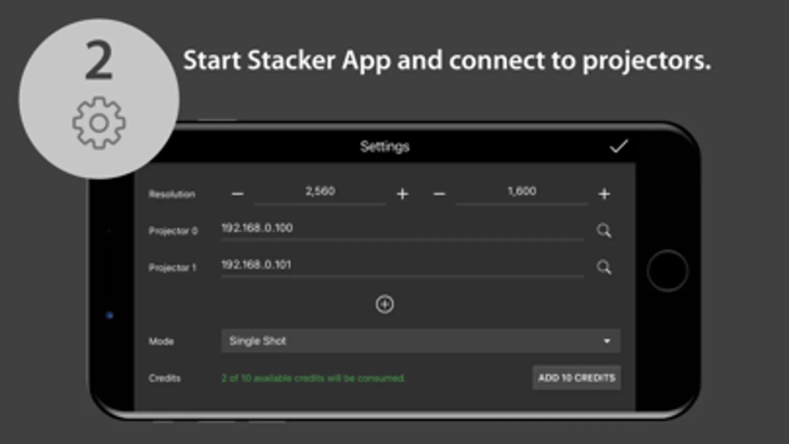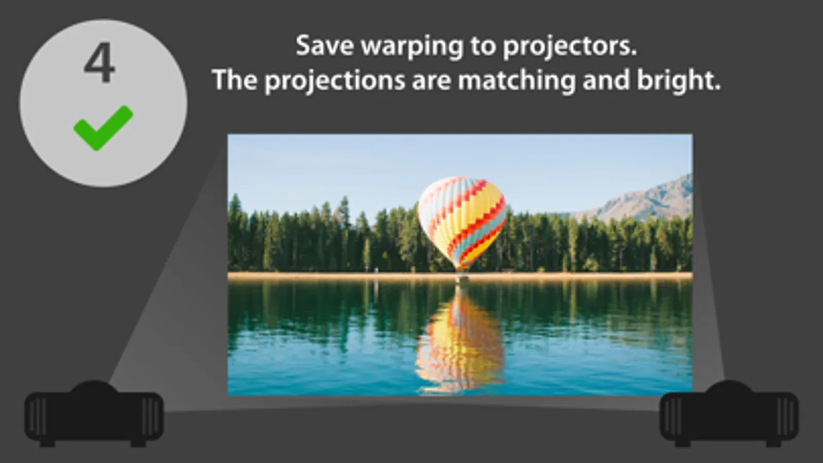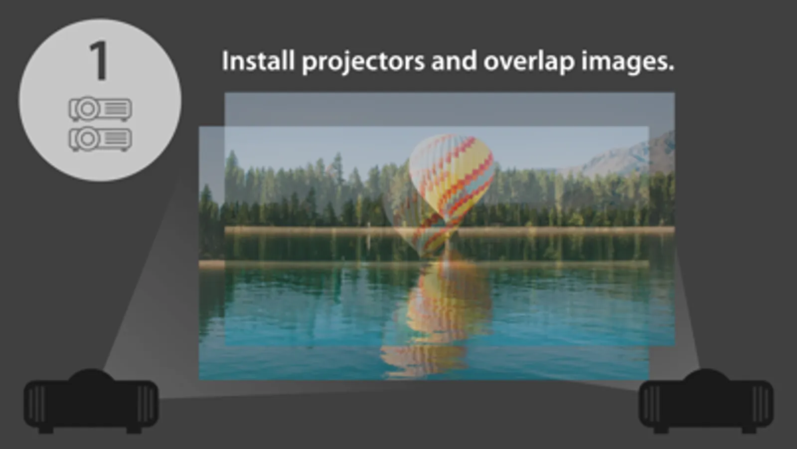 Combine the lumens of up to four projectors to create one image that is several times brighter than that produced by one unit. The images of all projectors in the stack are aligned automatically by the Stacker App.