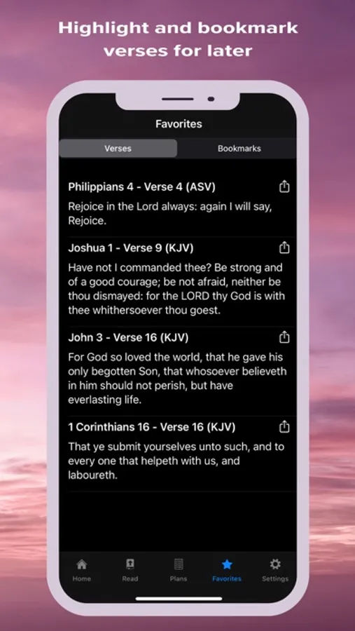 - Bookmark, highlight, and share verses and God’s scripture that inspire you!