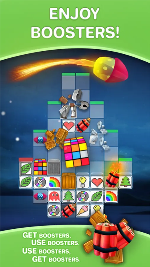 Swipe and join the matching images together. Blast the blocks before reaching the top!
