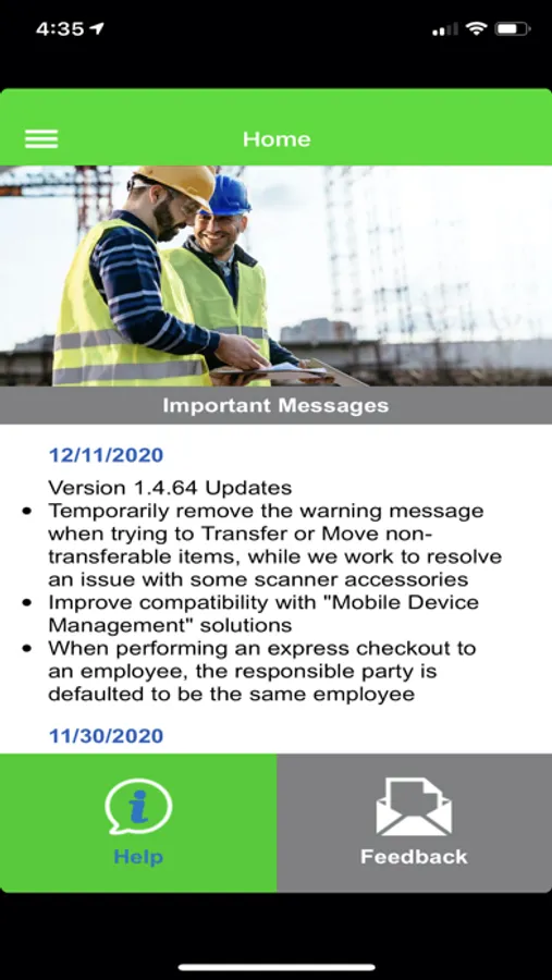 This application delivers mobile functionality to the field and warehouse teams. Field features include Search, Move, Verify, and Request. Warehouse features include Search, Transfer, Express Check In/Out, Count Inventory, Pick Tickets, and Create/Edit Items.