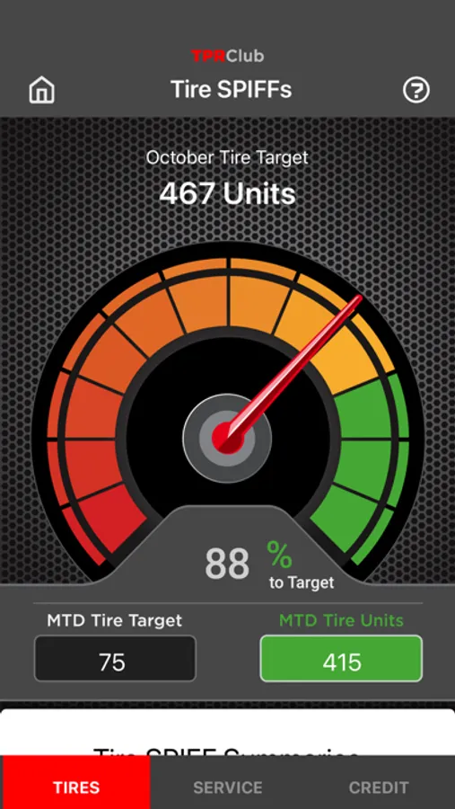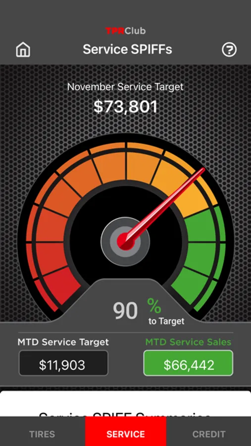 Not only can you quickly see your projected Tire, Service, and CFNA SPIFF earnings, but also your store’s standings on progress-to-Tire/Service monthly targets and eligibility—all from the convenience of your mobile phone.