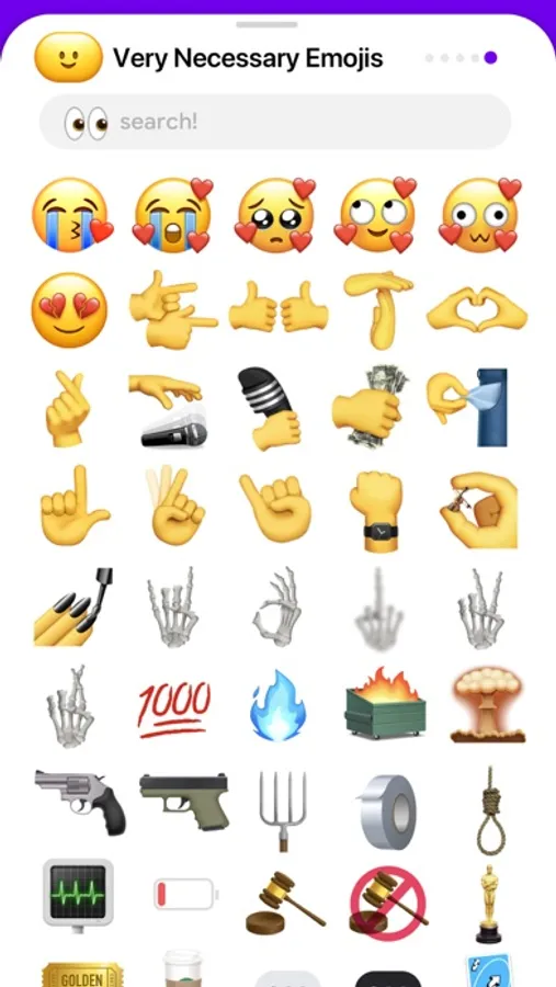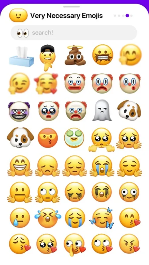 *Note that this is an iMessage Sticker App, and therefore you will not be able to insert these Very Necessary Emojis right inside your text boxes. Sucks—I know! To make up for it, I set the sticker size to the same size as the default emojis when in their singular, large form, so that they fit in like family.