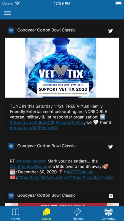 The official Goodyear Cotton Bowl Classic app is a must-have for fans headed to the game or following from afar. With interactive social media, ticketing, game day policies, and more the Goodyear Cotton Bowl Classic app covers it all!