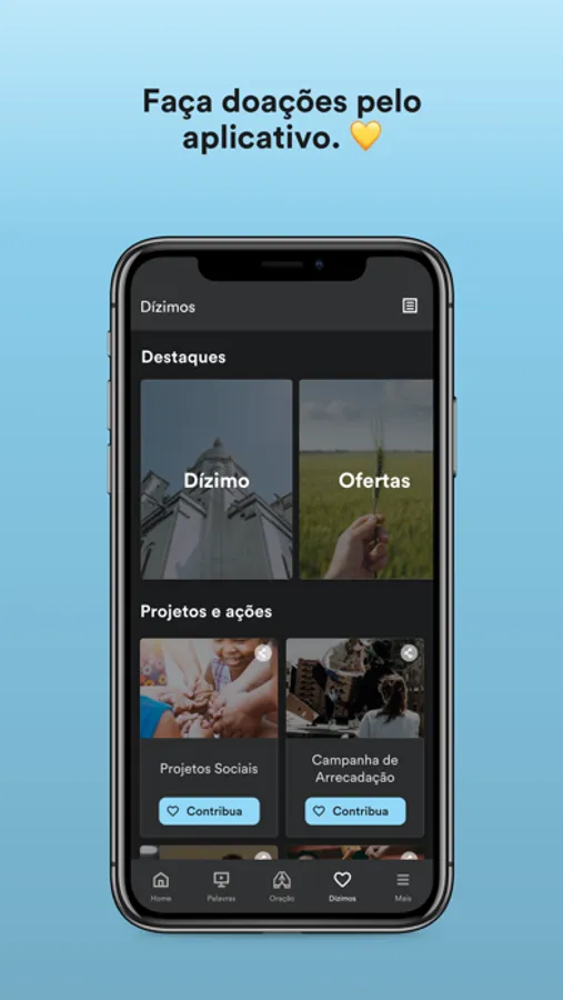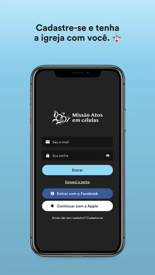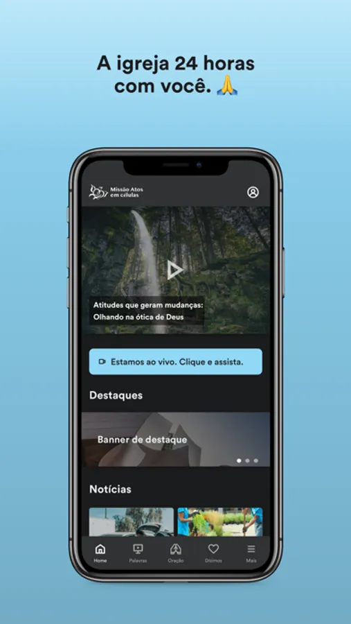 - Conecte-se com a igreja através dos grupos de interesse, receba conteúdo direcionado e obtenha sua carteirinha exclusiva.