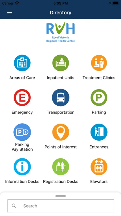 The RVH Map App helps navigate patients and visitors to their designation within Royal Victoria Regional Health Centre. Users can locate their destination through the app directory that alphabetically lists departments, clinics, programs and services. This app is also designed to provide helpful information about parking, accessibility and health centre points of interest.