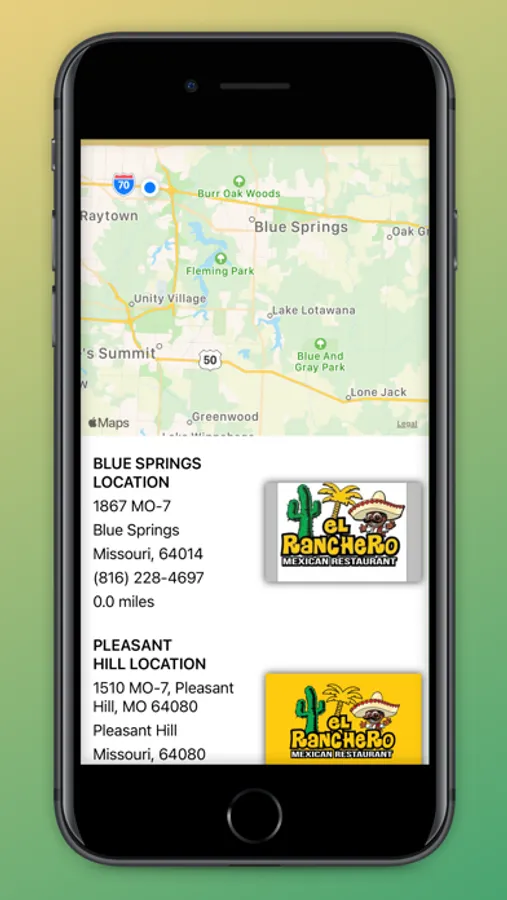 With El Ranchero App you can easily order your favorite Mexican food to pick up at our restaurants in Blue Springs or Pleasant Hill, Missouri. All you need to do is open the app, look up in our menu, select your favorites, and your ready to go. You will have access to our full menu, day special, and track your order. Also, you could save your account info as well your previous orders, ask for special instructions. Just download, order, enjoy, and order again.