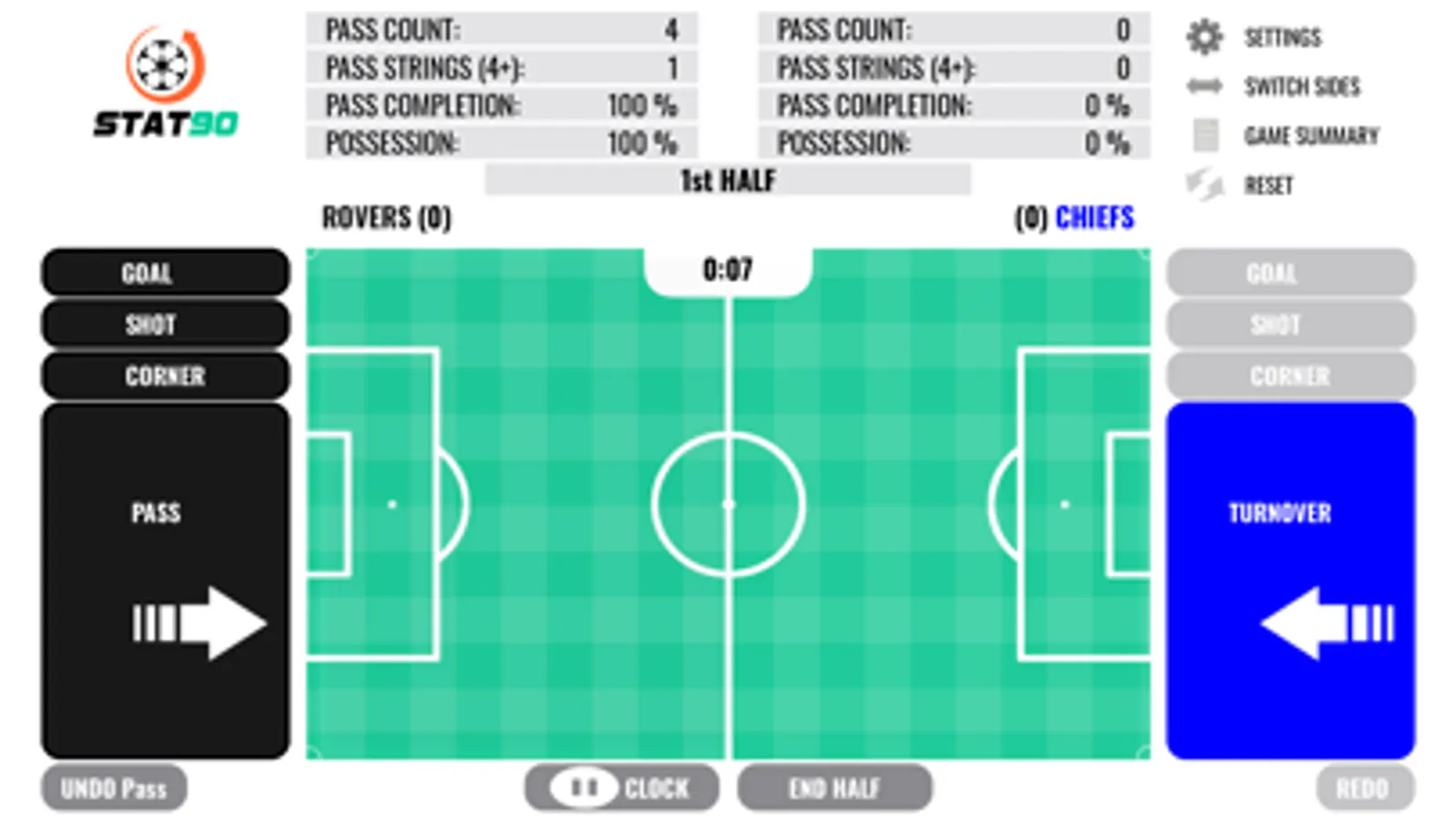 The primary purpose of this app is to keep track of passes and possession for both teams during soccer games.