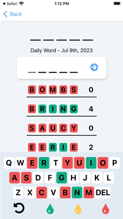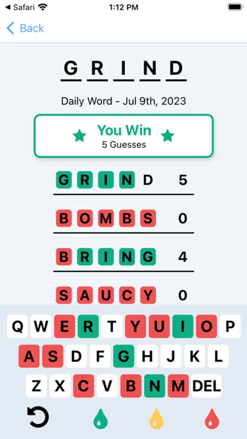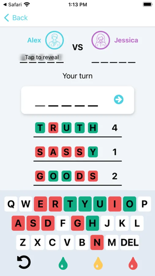 Jotto is a simple 5 letter word game that can be played alone or against a friend. Your goal is to guess a 5 letter secret word. This is accomplished by guessing 5 letter test words and being told a number of how many letters the guess and the secret word share. This allows you to eliminate and confirm letters to finally unscramble the secret word.
