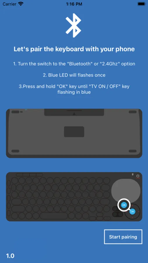 AIOKB app is able to set up a legacy-IR device such as a TV on the AIO Keyboard through the Bluetooth connection.