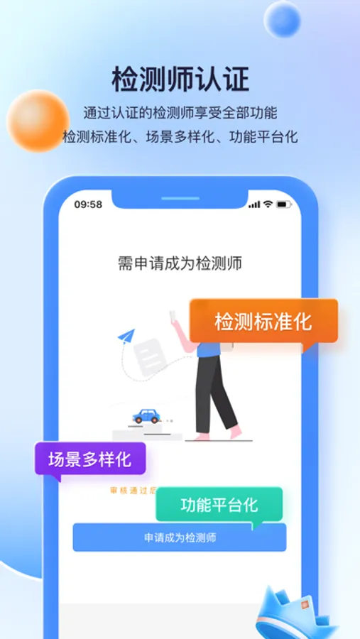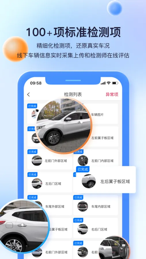 超100项标准检测项,享有厂家认证,为汽车厂商和经销商提供标准化检测系统,应用于置换、B2B、C2B、B2C等场景。