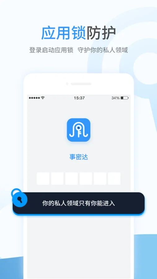 5.应用锁防护:登录需输入应用锁密码,你的私人领域只有你能进入。事密达守护你的私人领域,让你聊天更轻松自在。