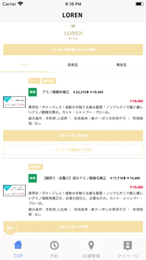 お得なクーポンが配信されます。ネット予約時にクーポン利用での予約も可能なので来店時もスムーズに施術頂けます。