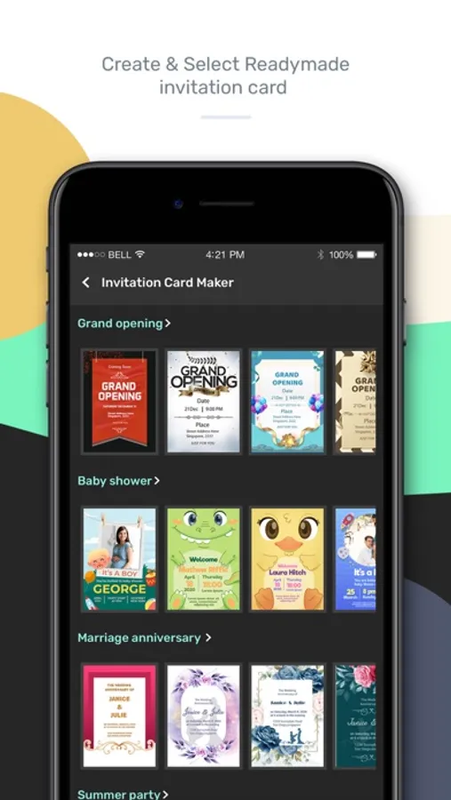Create beautiful invitation cards for every occasions like Wedding, Engagement, Baby Shower, Birthday Party, House-warming Party, Graduation Party etc. and invite your friends and family by sending invitation cards RSVP via Email or any other social networking platform directly from the app.
