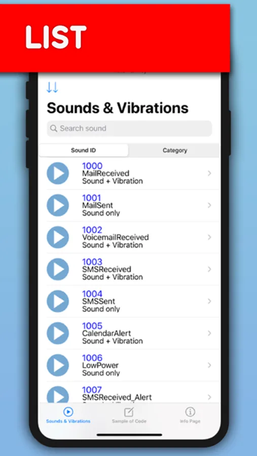 And then I thought, why not make such an application where all the sounds and vibrations that are by default in the iPhone operating system would be presented.
