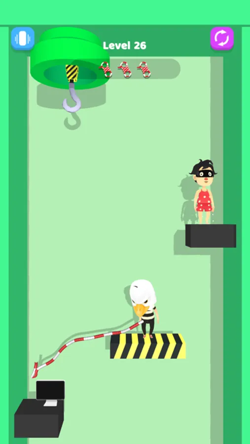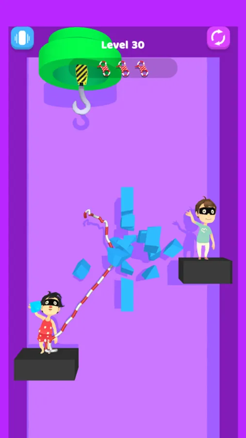 Drag to aim and throw a rope to others. Connect them and the hook!
