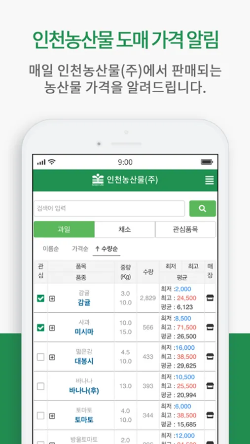 매일 인천농산물(주)에서 판매되는 농산물 가격을 알려드립니다.