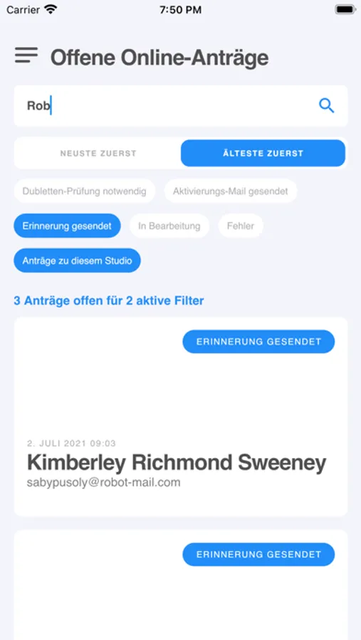 - Übersicht aller Meldungen von EGym, Fitnessraum und Skillcourt