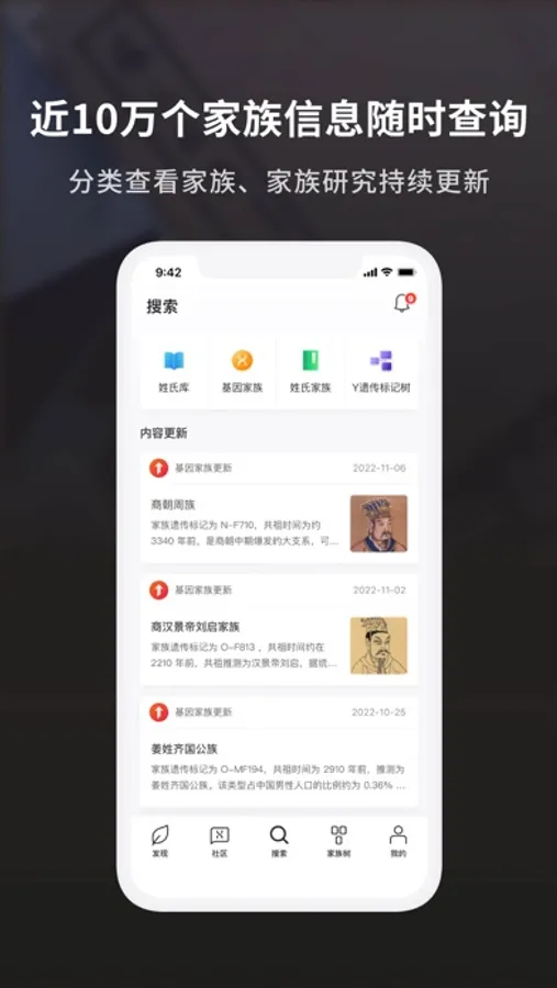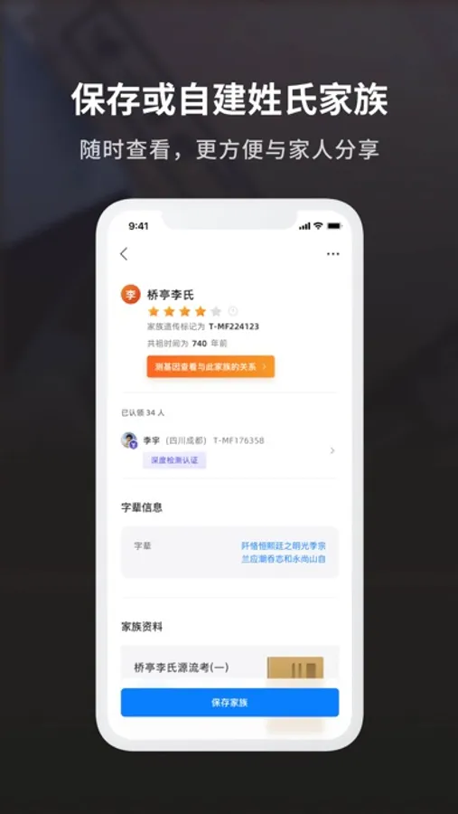 -家族库:随时随地查询近10w家族的家谱和基因信息,找到你的家族可以方便地保存