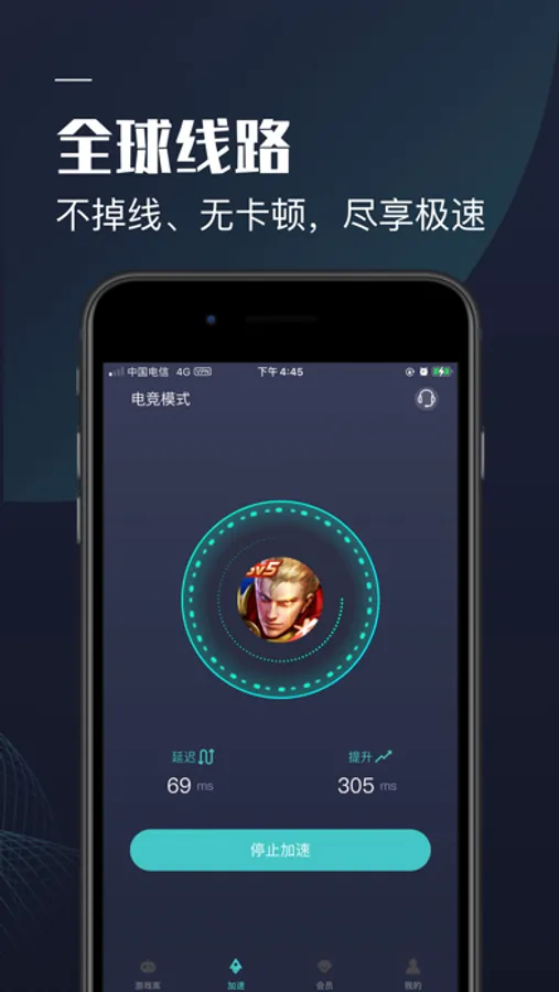 WiFi和移动数据两条线路叠加,借助双网络模式共同启用的优势,降低了网络连接过程中的丢包风险,让游戏表现更稳定,极速不跳Ping