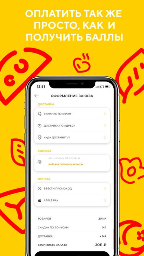 Оплата банковскими картами, наличными или Apple Pay прямо из приложения