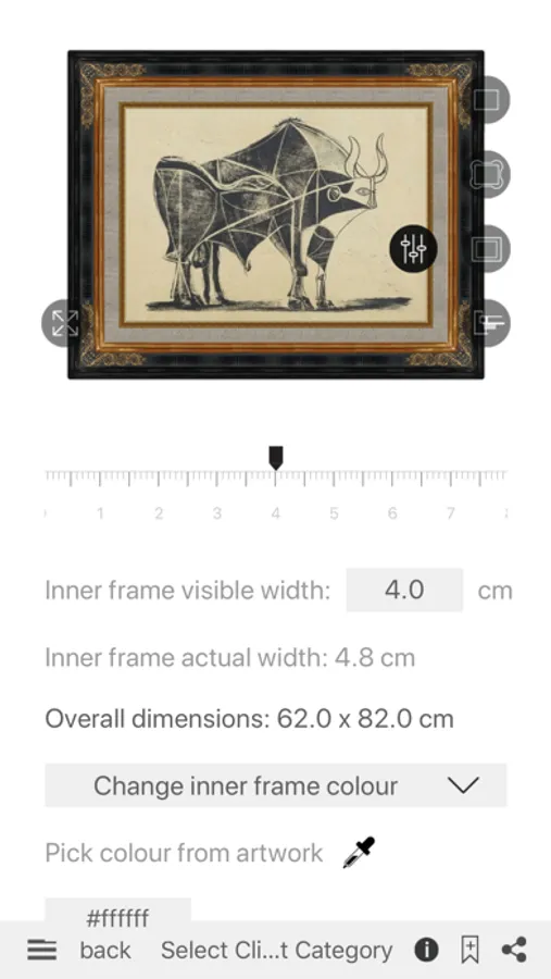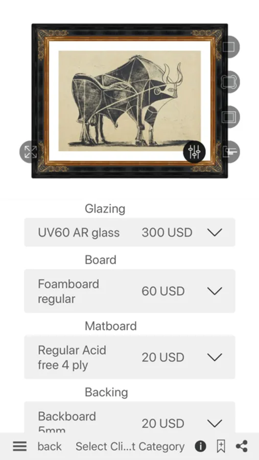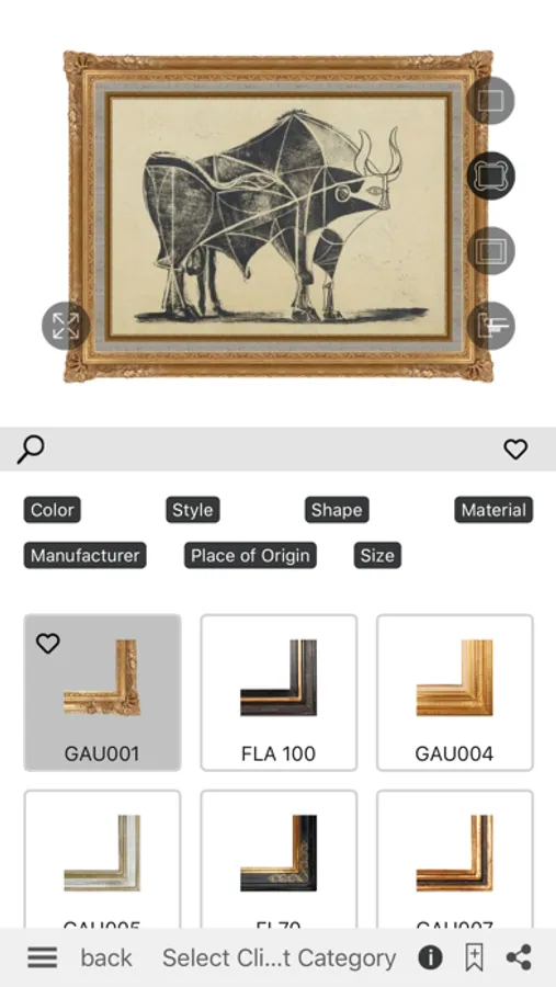 - Easily generate virtually framed images of clients’ artworks with the frames in your collections.