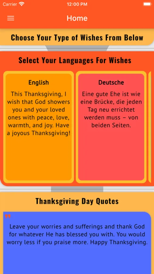 thanksgiving day Messages in native English & english, french, spanish, portuguese, german, italian, hindi font
